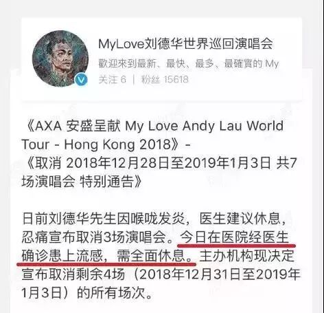 后主办方公告,刘德华确诊患上流感,需要彻底休息。
